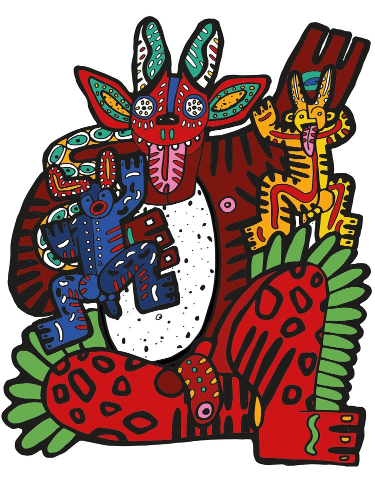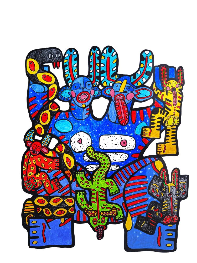 2024, Mascara del Carnaval de Barranquilla. Tinta y Pastel 50×70 cm.