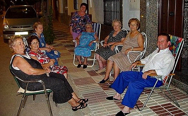 During the summer, the heat is stifling in many villages of Spain, even at night, especially in Murcia, my native region. The only way to cope with the unbearable heat was and is to gather with neighbors at the doorsteps of houses in search of a slight breeze of fresh air. In turn, survival has transformed into a kind of neighborhood council, where all kinds of stories, gossip, concerns, meals, drinks, mostly alcohol, cards, and board games like Ludo are shared.